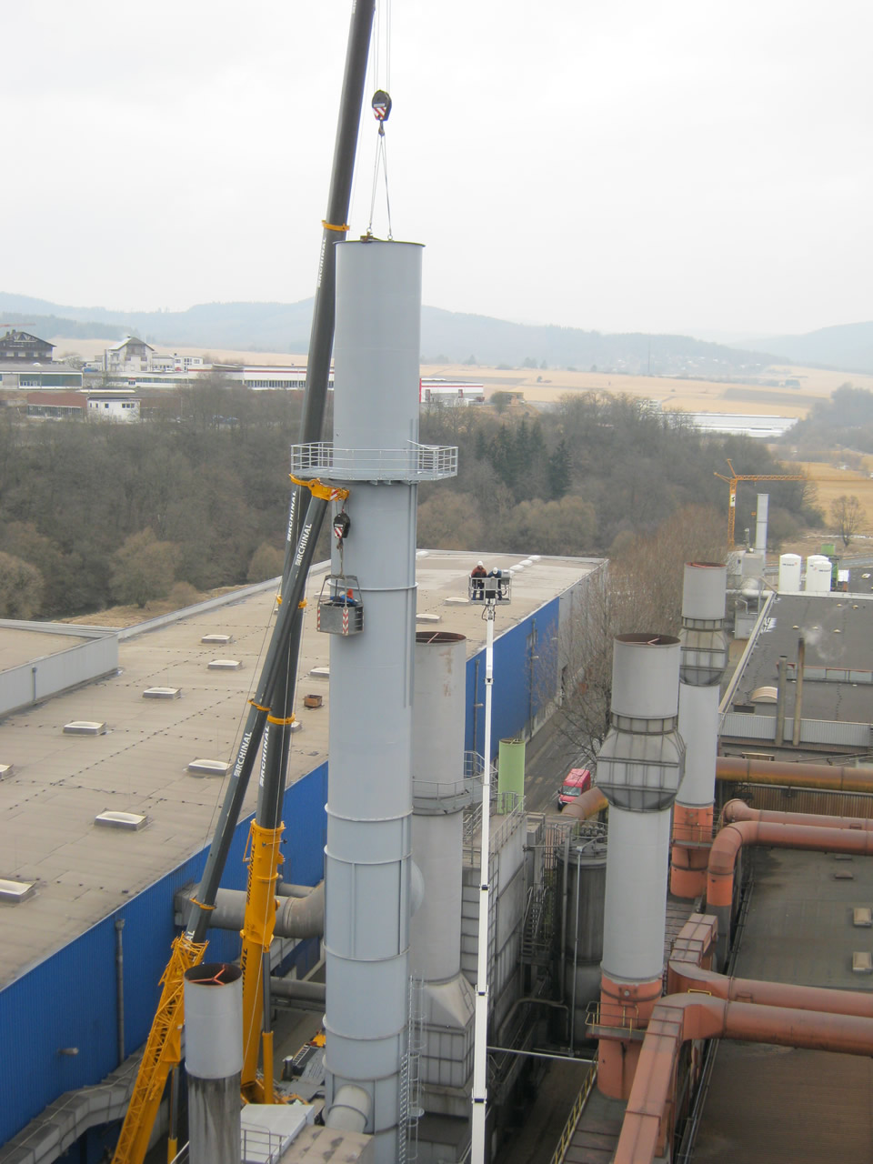 Unter anderem können dies sein: Kamine (Höhe ca. 42 m), Großrohrleitungen, Hallen-/Krananlagen, Dachversteifungen, Trichter für Abhitzekessel usw.